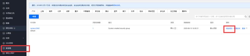 • 回到控制台面板,我们需要开放一些通道让面板通过,选择安全组