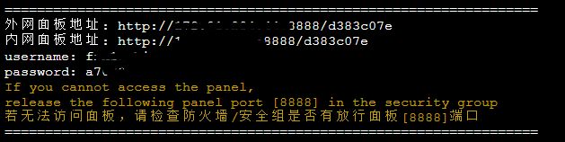 • 复制外网面板地址,在打开的页面中,用户名输入username后面的内容,密码输入password后面的内容